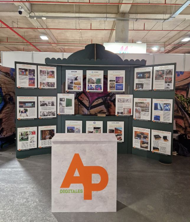 Le stand des Prix APdigitales pour C!Print Madrid 2026 a commencé comme un concept de type kiosque et s'est concrétisé dans un espace réel.